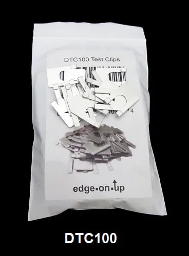 100 vienkartinių bandymo spaustukai [DTC100], kurie palengvina ir paspartina ašmenų aštrumą matuojant įrenginiuose, tokiuose kaip PT50A, PT50B ir kituose „Edge-On-Up” įrenginiuose. Kiekviename spaustuke yra įmontuotas bandymo siūlas, todėl jį užtenka pritvirtinti prie spaustukų pagrindo, kad atliktumėte matavimą – be atskiro bandymo medžiagos uždėjimo.
