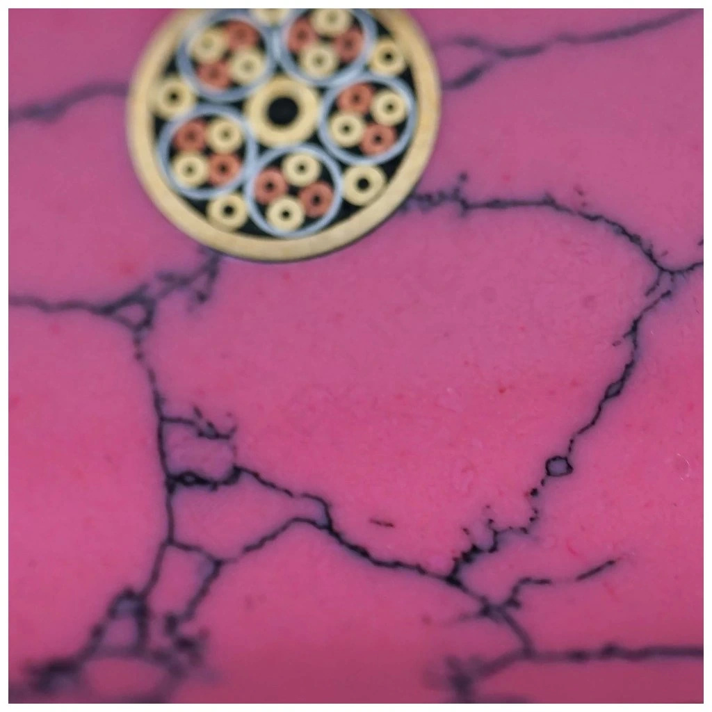 PINK STONE serijos peilių rankena pagaminta iš howlito ir yra išskirtinė ne tik išvaizda, bet ir savybėmis. Howlitas, natūralus mineralas su būdingomis gyslomis, dažnai yra stabilizuojamas ir dažomas, leidžiantis gauti platų patrauklių spalvų spektrą – nuo tradicinio žydros iki modernių atspalvių, tokių kaip rožinė ar mėlyna. Dėl šio proceso rankena tampa atspari drėgmei, dėvėjimuisi ir trūkinėjimui, užtikrinant ilgą tarnavimo laiką. Kiekvienas egzempliorius yra unikalus, nes gyslų raštas sukuria nepakartojamus modelius, suteikiančius peiliui prabangų išvaizdą. Howlito rankena ne tik atrodo estetiškai, bet ir maloniai priglunda prie rankos, užtikrinant patogų laikymą darbo metu. Šis medžiagas yra puikus pasirinkimas žmonėms, ieškančiems funkcionalumo ir elegancijos derinimo.