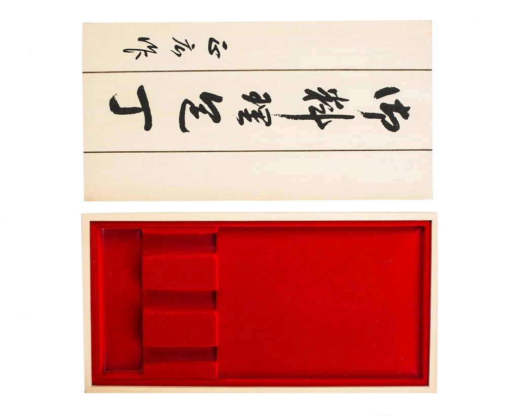 Opakowanie ozdobne Masahiro wykonane z naturalnego drewna, przeznaczone na trzy noże o maksymalnej długości 335mm (nóż wraz z rękojeścią). Japoński napis: „Noże kuchenne Masahiro”.